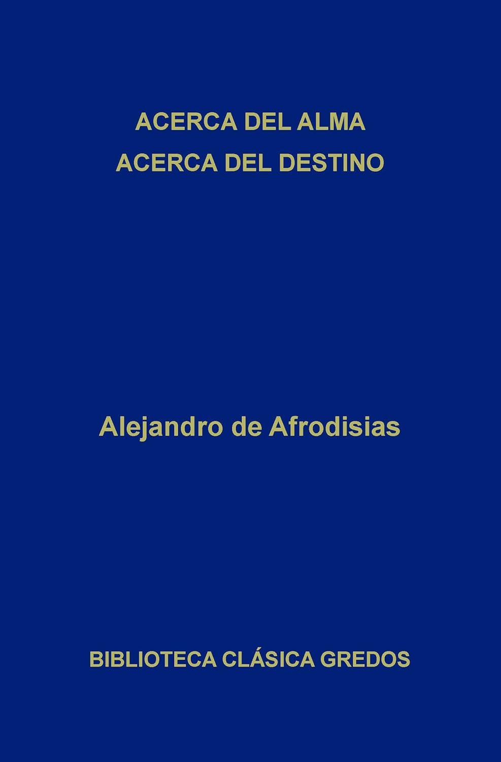 En este volumen se incluyen sus dos obras más emblemáticas: los tratados Acerca del alma y Acerca del destino. El tratado Acerca del alma aborda una interpretación de la obra homónima de Aristóteles, y contiene el análisis y la discusión de las cuestiones más controvertidas de la psicología peripatética, como es el caso del tipo de implicación que tiene el denominado intelecto agente en el proceso cognitivo humano. El tratado Acerca del destino contiene una profunda reflexión desde un punto de vista aristotélico de dos temas de enorme presencia en la filosofía helenística, el tema del destino y el de la libertad personal.