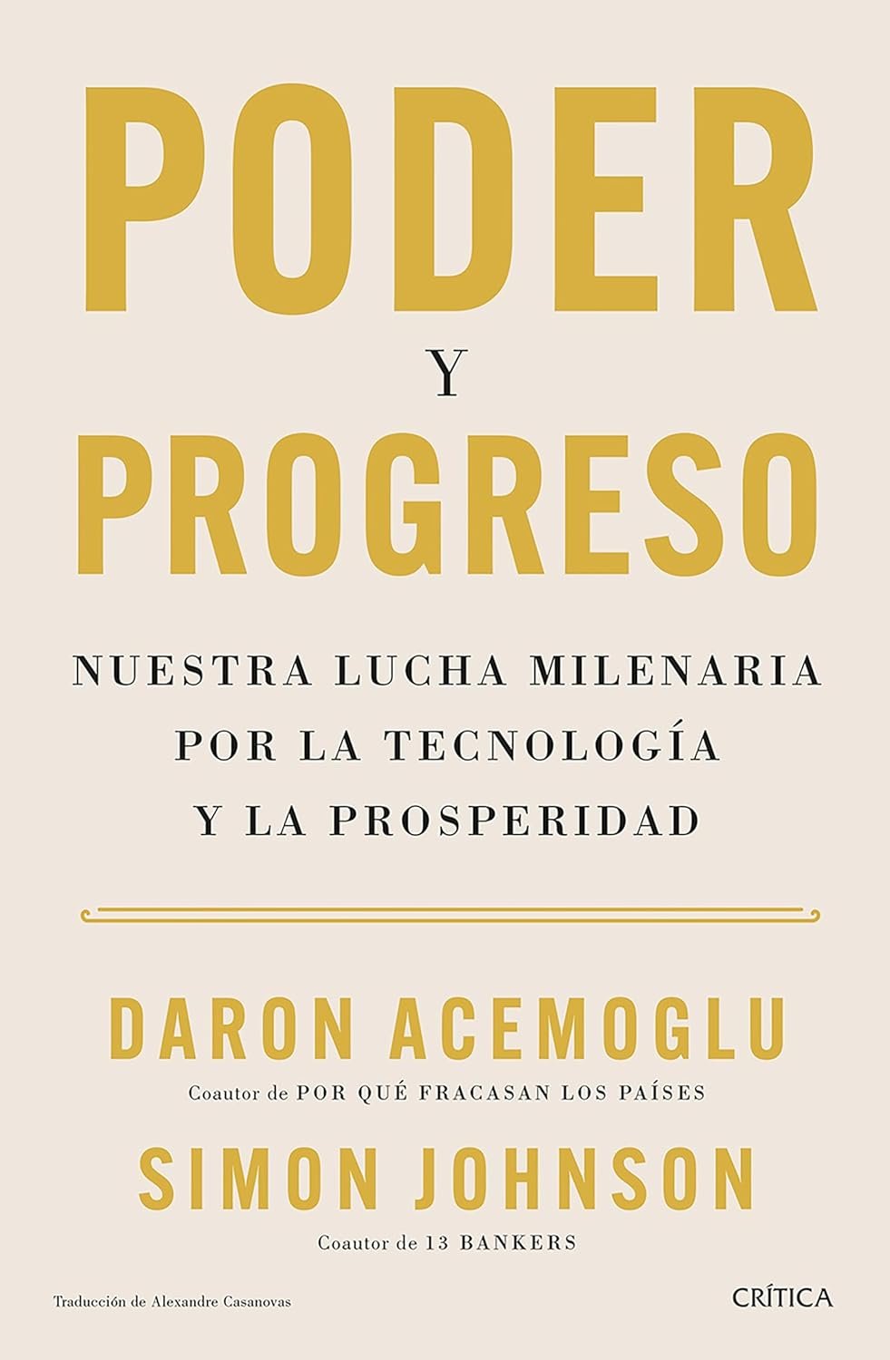 Poder y progreso ofrece una nueva interpretación de la economía política de la innovación y desafía el derrotismo de quienes asumen que el desarrollo técnico trae inevitablemente una concentración del poder y la riqueza. Acemoglu y Johnson demuestran que estos avances pueden convertirse en una herramienta de empoderamiento y democratización.
