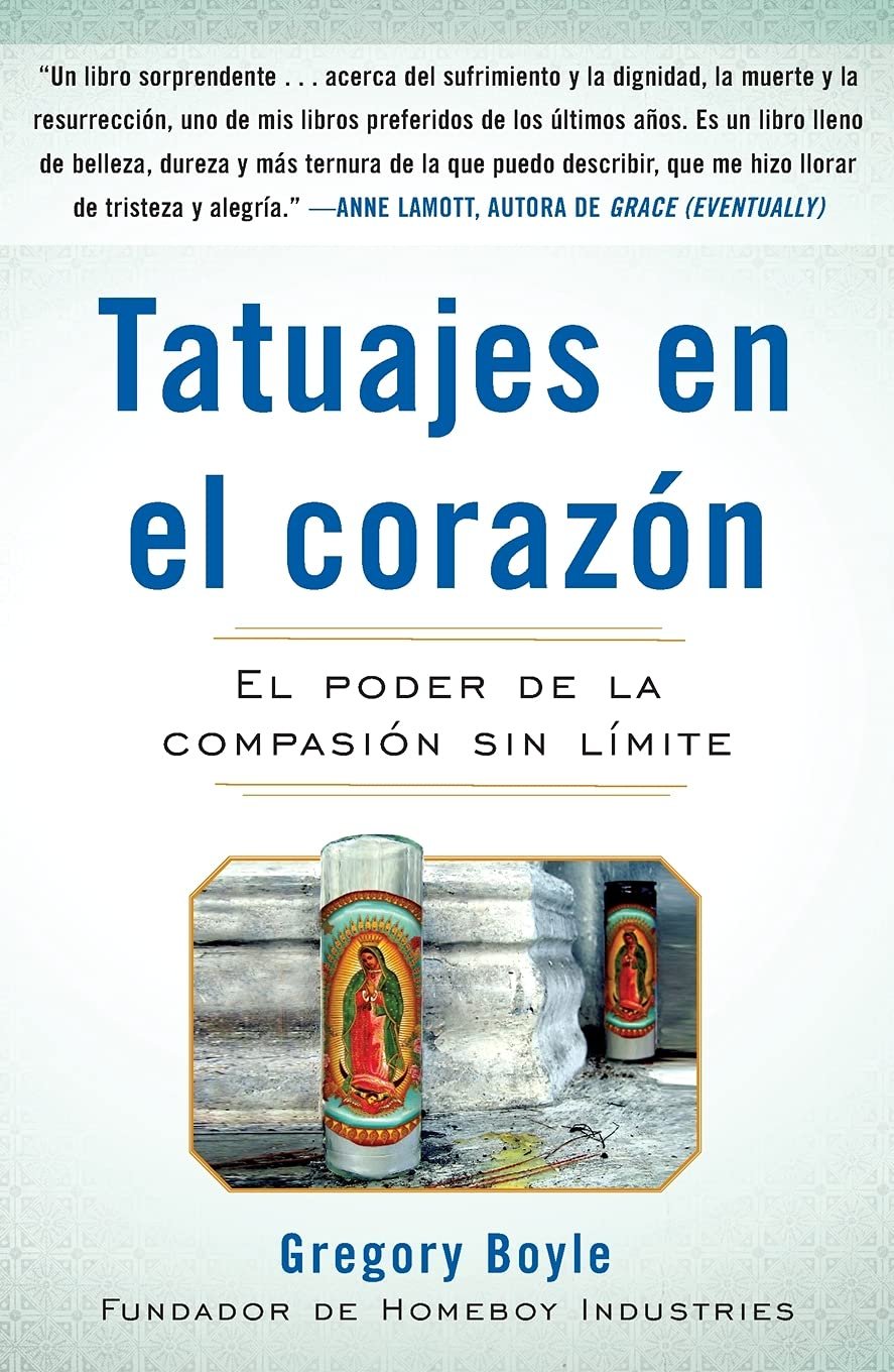 En su condición de párroco que trabaja en el vecindario con la mayor concentración de actividad pandillera y criminal en Los Ángeles, Gregory Boyle ha creado una organización para ofrecer empleos, capacitación laboral y estímulos para que los jóvenes puedan trabajar juntos y aprender el respeto mutuo proveniente de la colaboración. Tatuajes en el corazón es una impresionante serie de parábolas producto de sus experiencias con personas del barrio durante las dos últimas décadas. Clasificados por temas y llenos de humor fresco y generosidad abundante, estos ensayos nos ofrecen una visión conmovedora sobre la forma tan plena en que podemos vivir nuestras vidas si encontramos la alegría en amar a los demás y en ser amados incondicionalmente. De César, el joven enorme y lleno de tatuajes haciendo compras en JCPenney recién salido de la prisión, aprendemos a sentirnos dignos del amor de Dios. De Lula, el chico de diez años, aprendemos la importancia de ser conocidos y aceptados. De Pedro, entendemos el tipo de paciencia necesaria para rescatar a alguien de la oscuridad. En cada capítulo recibimos el regalo de la sabiduría maravillosa y duramente lograda por Boyle.